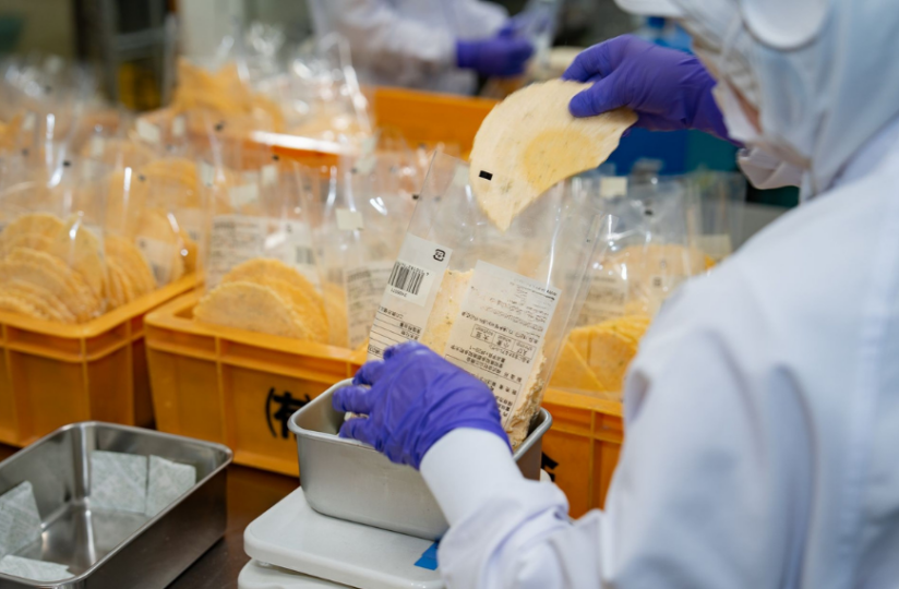 軽やかにパリッと割れる食感は魅力ですが、そのぶん衝撃にはあまり強くありません。工場から出荷されるまでのあいだに、どうしても少し欠けたり、途中で割れてしまうえびせんべいが生まれてしまいます。